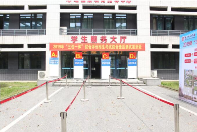 3月30日,11点20分,招生志愿者们准时在明德楼一楼的学生服务大厅和招聘室就位,准备入围我校“三位一体”的学生综合素质测试的报到工作。学生服务大厅作为“主会场”,负责相关考生的报到工作;招聘室作为“分会场”,主要充当家长与学生的休息室。中午12点左右,考生及家长就有序地排在明德楼外面准备报到。