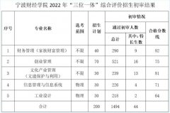 宁波财经学院2022年“三位一体”综合评价招生初审通过