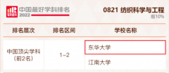 东华大学“纺织科学与工程”学科,再次蝉联全国第一