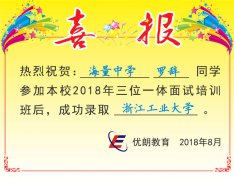 喜讯:海量中学罗辞同学成功录取浙江工业大学