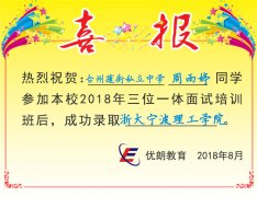 喜讯:台州蓬街私立中学周雨婷同学成功录取浙大宁波理