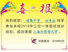 喜讯:诸暨中学孙存远同学成功录取上海外国语大学