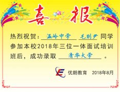 喜讯:温岭中学毛则尹同学成功录取清华大学