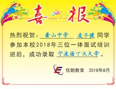 喜讯:萧山中学凌子健同学成功录取宁波诺丁汉大学