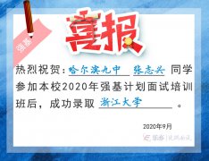 2020喜讯:哈尔滨九中张志兴同学成功录取浙江大学