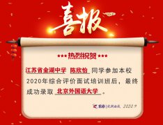 2020喜讯:江苏省金湖中学陈欣怡同学成功录取北京外国