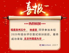 2020喜讯:福建泉州五中林睿思同学成功录取北京外国语