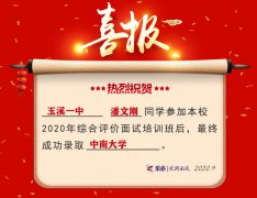 2020喜讯:玉溪一中潘文刚同学成功录取中南大学