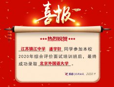 2020喜讯:江苏镇江中学潘宇轩同学成功录取北京外国语