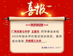 2020喜讯:广州市第七中学王俊宇同学成功录取华南理工