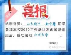 2020喜讯:山大附中靳宁馨同学成功录取北京大学