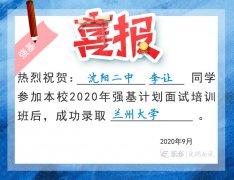 2020喜讯:沈阳二中李让同学成功录取兰州大学