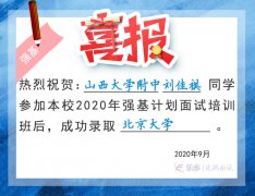 2020喜讯:山西大学附属中学刘佳祺同学成功录取北京大
