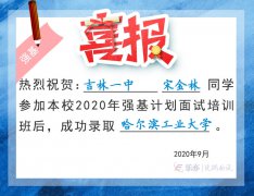 2020喜讯:吉林一中宋金林同学成功录取哈尔滨工业大学