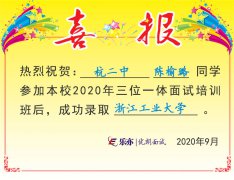 2020喜讯:杭二中陈榆璐同学成功录取浙江工业大学