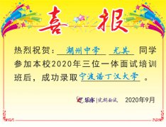2020喜讯:湖州中学尤其同学成功录取宁波诺丁汉大学