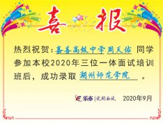 2020喜讯:海盐二中周天佑同学成功录取湖州师范学院