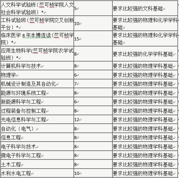 1.社会科学试验班(竺可桢学院人文社会科学试验班)和人文科学试验班(竺可桢学院人文社会科学试验班)按社会科学试验班和人文科学试验班招生,进校后进入竺可桢学院人文社会科学试验班学习;工科试验班(竺可桢学院交叉创新平台)进校后进入竺可桢学院工科混合班学习;临床医学8年本博连读直接进入竺可桢学院巴德年班学习;应用生物科学(竺可桢学院农学试验班)按应用生物科学招生,进校后进入竺可桢学院农学试验班学习。