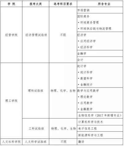 学校实施大类招生,按照试验班大类进行录取。学生入学后,首年修读所在学院的基础及通识课程,第二学年在学院内选定主修专业。