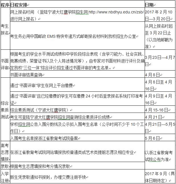 第十七条 招生日程安排(如有变动,以学校最后通知为准)