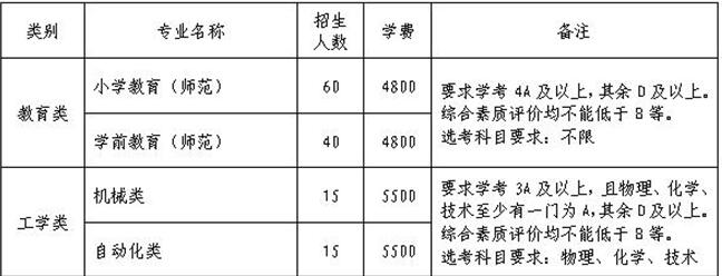 1.报考教育类要求有4A及以上,其余科目为D等及以上,综合素质评价均不能低于B等,选考科目不限;报考工学类要求有3A及以上,且物理、化学、技术至少有一门为A,其余科目为D等及以上,综合素质评价均不能低于B等,选考科目要求为物理、化学、技术三门之一。