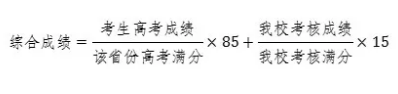 考生综合成绩中,高考成绩占85%,我校考核成绩占15%。具体公式为: