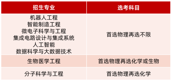 我校2021年在广东省“631”综合评价招生计划250人。招生专业及选考科目如下: