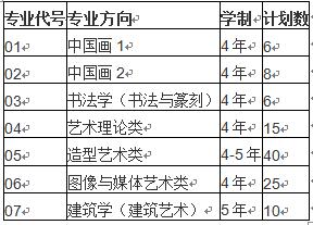 实践类95名:中国画(中国画1,中国画2)14名,书法学(书法与篆刻) 6名,造型艺术类40名,图像与媒体艺术类25名,建筑学(建筑艺术)10名。