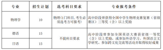招生专业包括:物理学、德语、日语,计划招生总人数:40人。考生需同时符合以下报考条件: