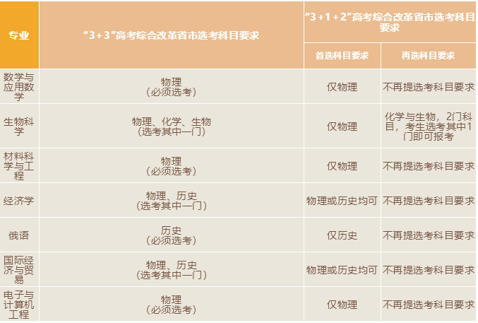 具体选考科目以生源省(直辖市)教育考试院公布为准。