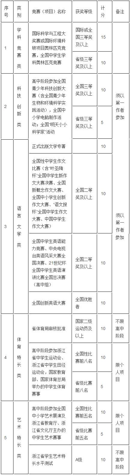3.通过浙江省各科目高中学业水平测试(无不合格科目),学业水平测试成绩为60分(含)以上,学业水平测试成绩计算办法:A-12分,B-9分,C-6分,D-4分(我校认可往届生相应科目的高中学考成绩等级,2016届及之前的往届生将通用技术和信息技术两项取高的等级作为“技术”科目学考成绩等级);