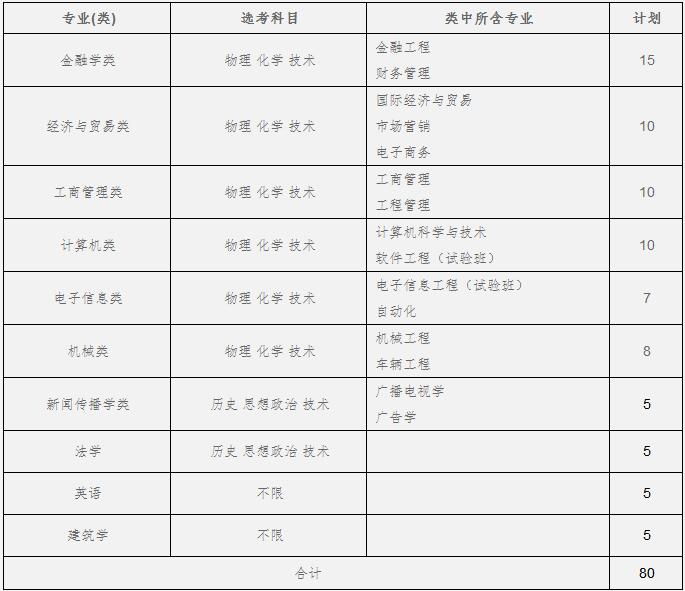 第十二条 学校2018年“三位一体”综合评价招生计划总数为80名,具体如下表所示: