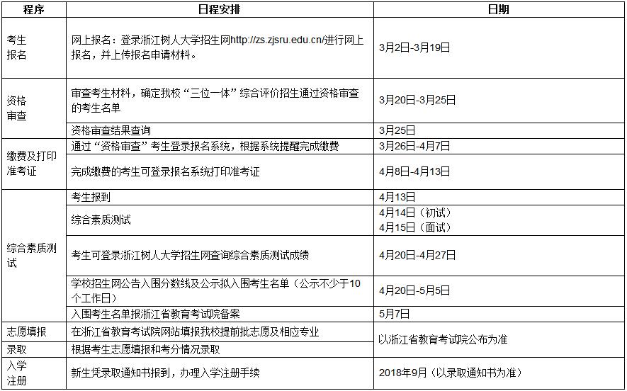 浙江树人学院(浙江树人大学)2018年“三位一体”综合评价招生章程