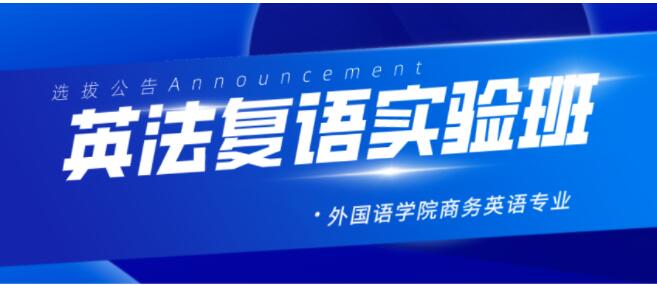 2022年9月商务英语专业“英法复语实验班”面向全校本科新生招生,欢迎报名。具体选拔办法如下: