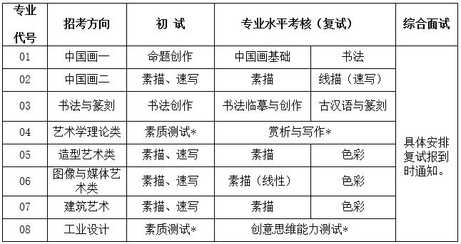 *注 素质测试科目:旨在测试考生中学阶段所学语文、数学、英语知识的掌握及艺术素养;赏析与写作科目:旨在考察学生的写作能力以及对艺术作品的分析和鉴赏能力;